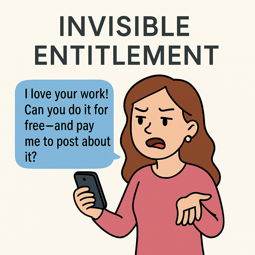 The new freeloaders don’t wear suits—they show up draped in ring lights and Canva-crafted affirmations. They pitch “collaboration” while quietly handing you the bill. And they get away with it because the ask comes coated in charm, hashtags, and the language of empowerment.